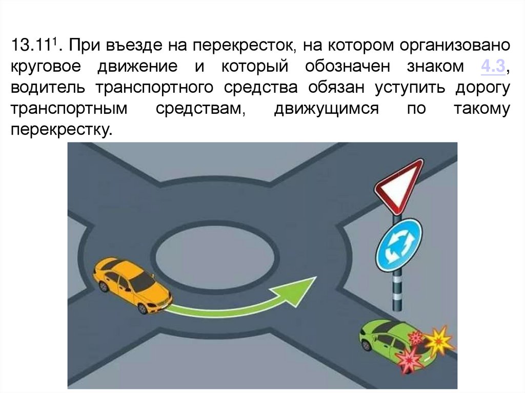 13.111. При въезде на перекресток, на котором организованокруговое движение и который обозначен знаком 4.3,