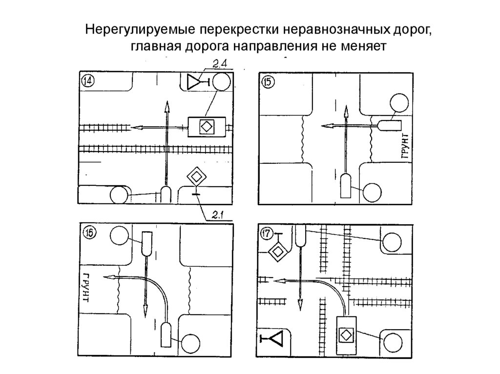 Нерегулируемые перекрестки неравнозначных дорог,главная дорога направления не меняет