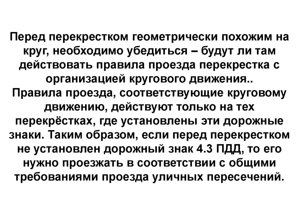 Перед перекрестком геометрически похожим накруг, необходимо убедиться – будут ли там