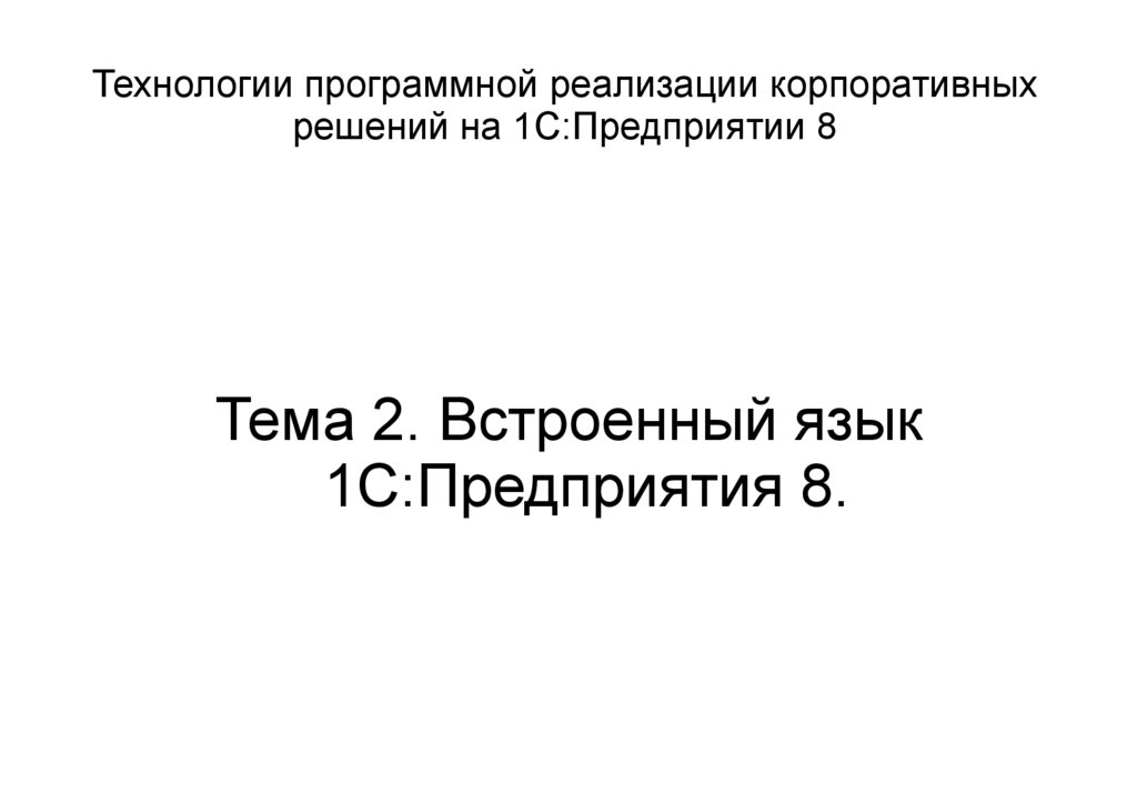 Технологии программной реализации корпоративных решений на 1С:Предприятии 8. Встроенный язык 1С:Предприятия 8