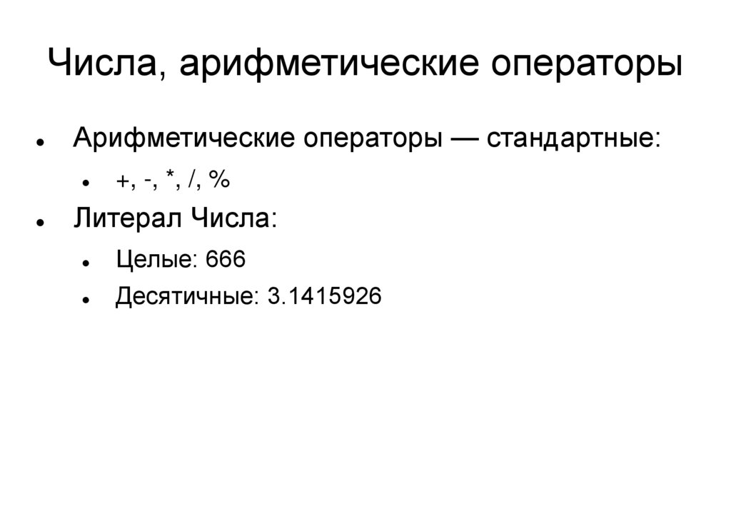 Числа, арифметические операторыАрифметические операторы — стандартные: