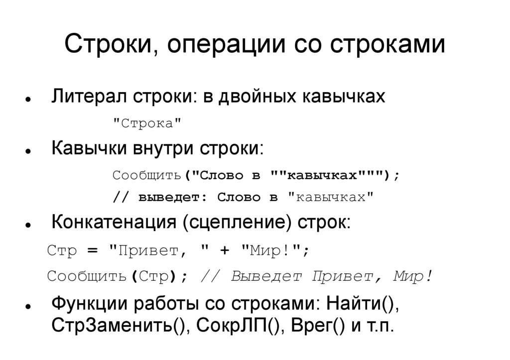 СтрЗаменить(), СокрЛП(), Врег() и т.п.