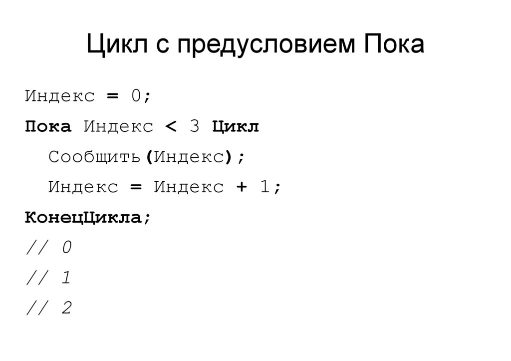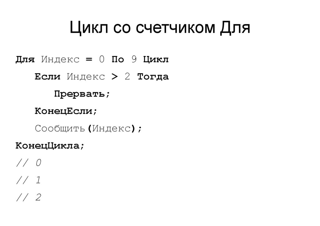 Цикл со счетчиком ДляДля Индекс = 0 По 9 Цикл