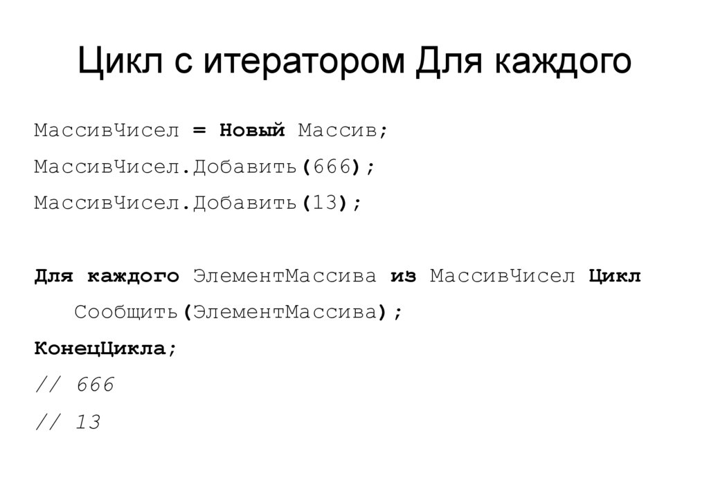 Цикл с итератором Для каждогоМассивЧисел = Новый Массив;