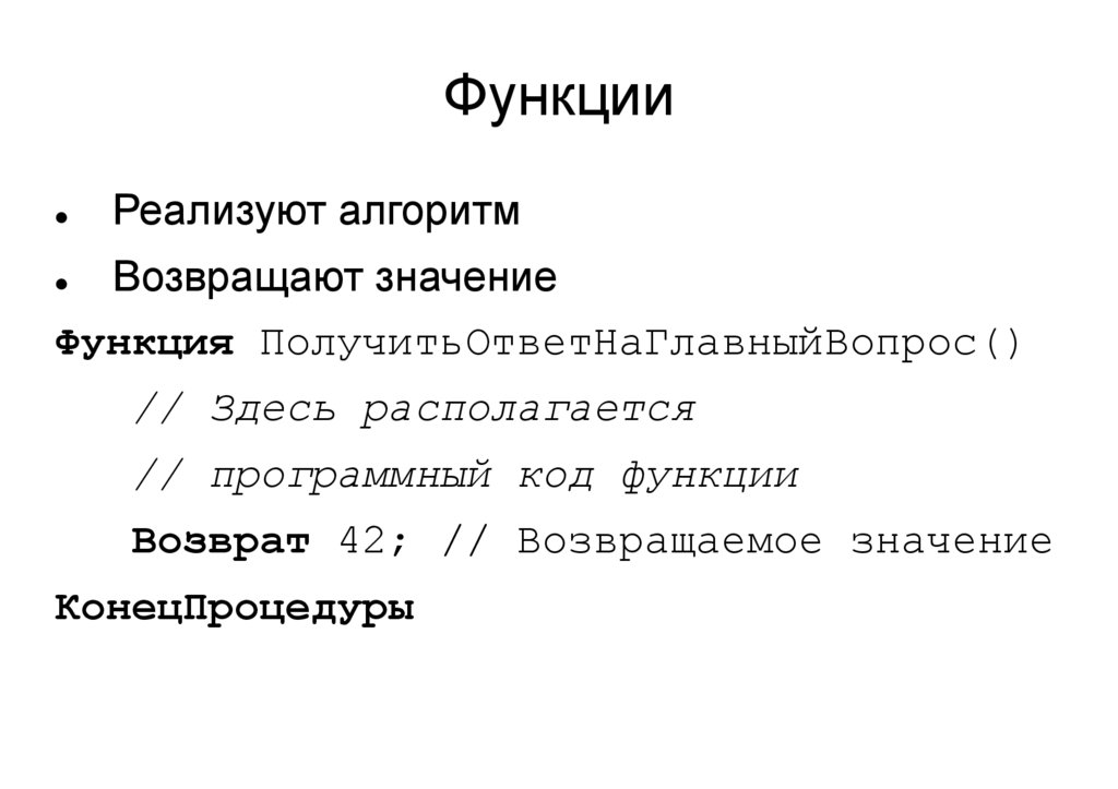 Встроенный язык 1СПроцедурный (не объектно-ориентированный)