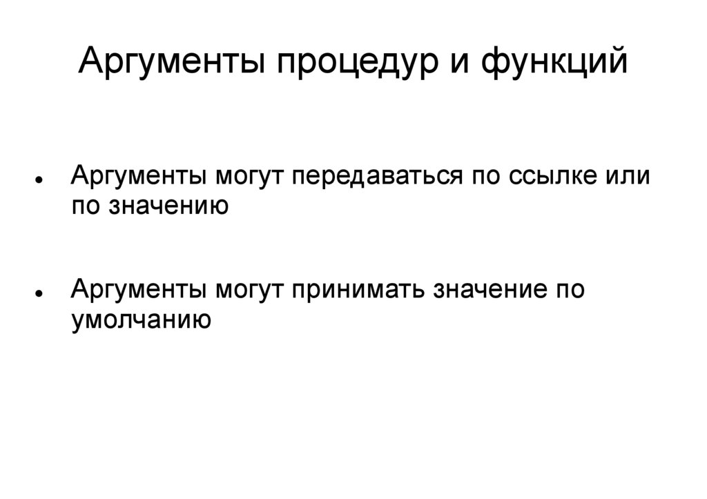 Аргументы процедур и функцийАргументы могут передаваться по ссылке или