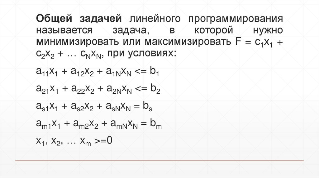 Общей задачей линейного программированияназывается