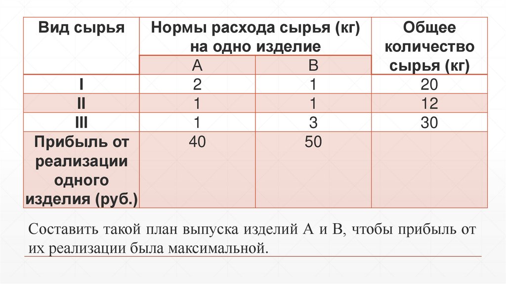 Составить такой план выпуска изделий А и В, чтобы прибыль от