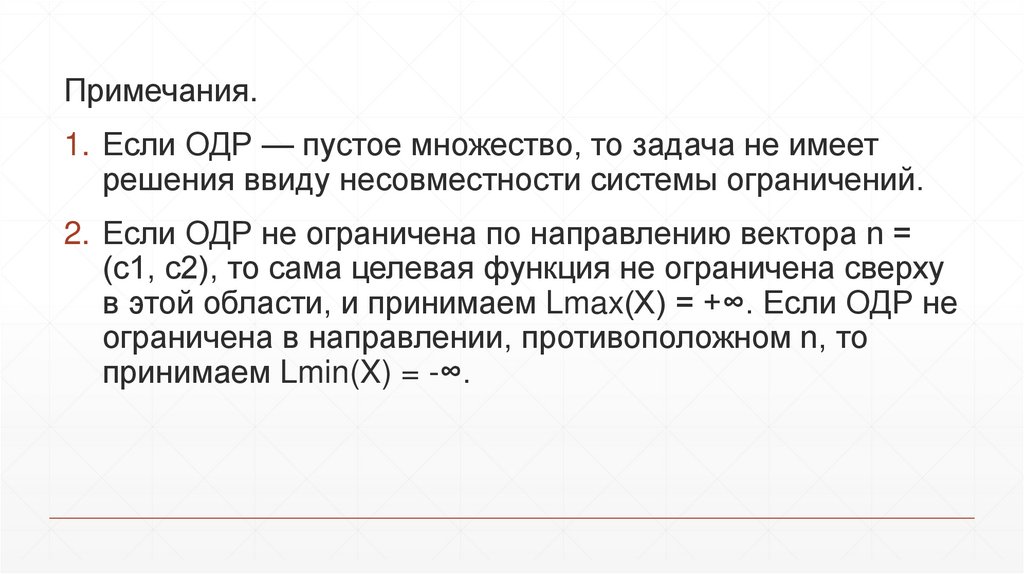 Примечания.1. Если ОДР — пустое множество, то задача не имеет