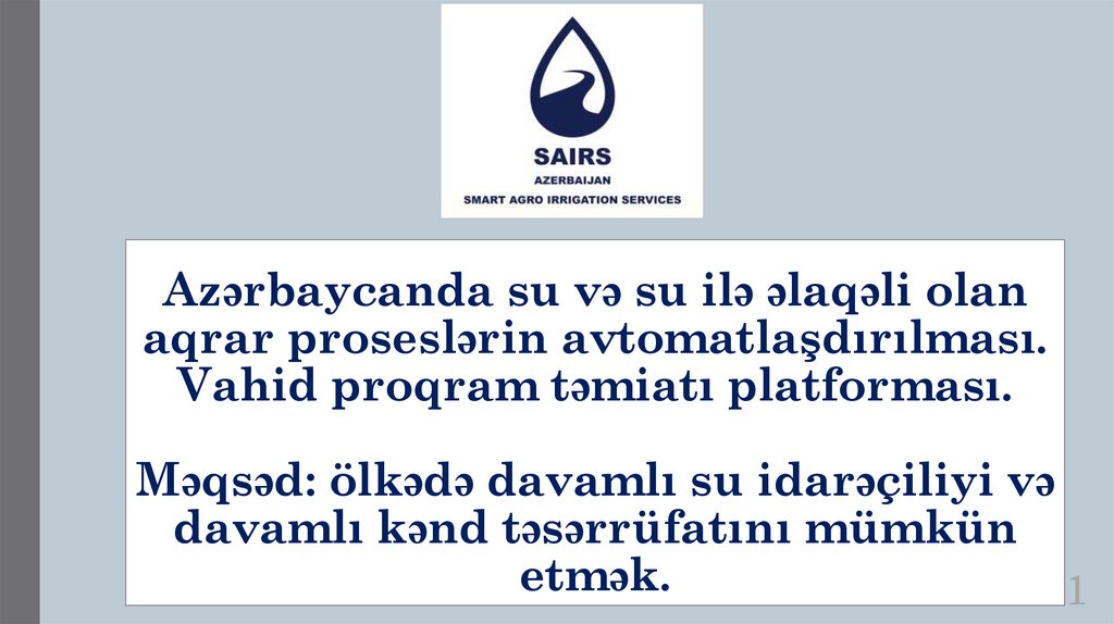 Azərbaycanda su və su ilə əlaqəli olan aqrar proseslərin avtomatlaşdırılması. Vahid proqram təmiatı platforması