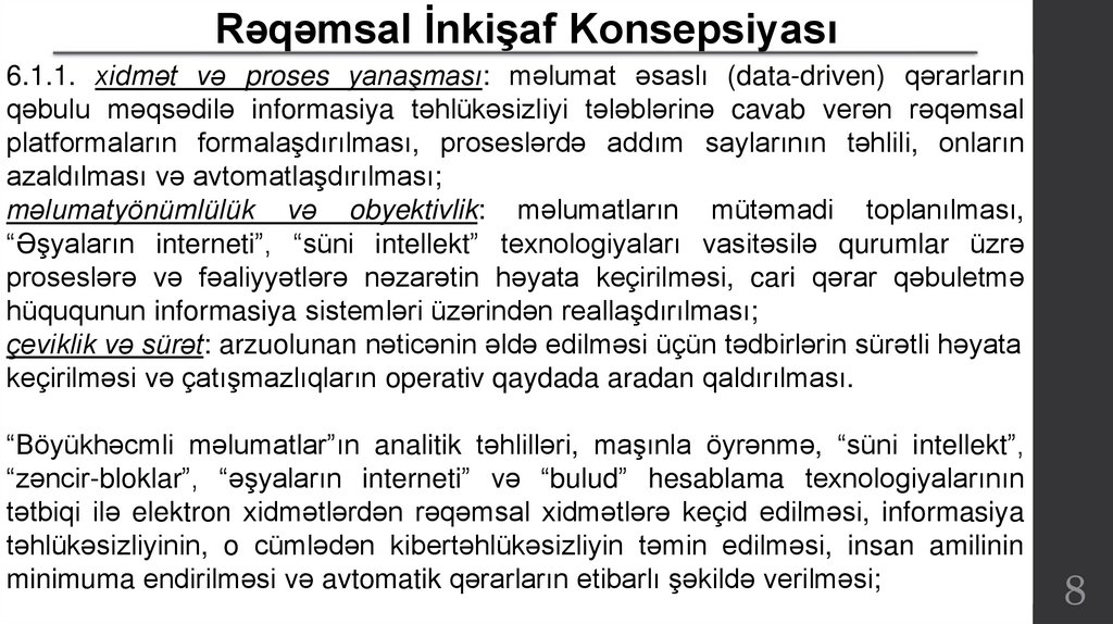Rəqəmsal İnkişaf Konsepsiyası6.1.1. xidmət və proses yanaşması: məlumat əsaslı (data-driven) qərarların