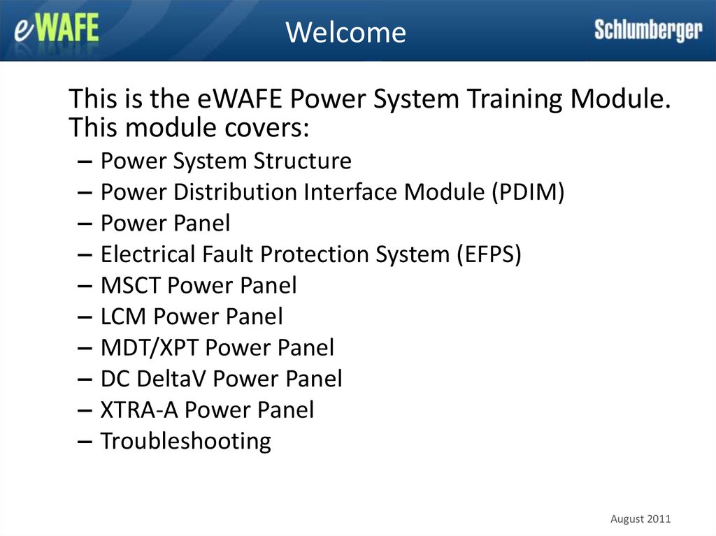 This is the eWAFE Power System Training Module.This module covers: