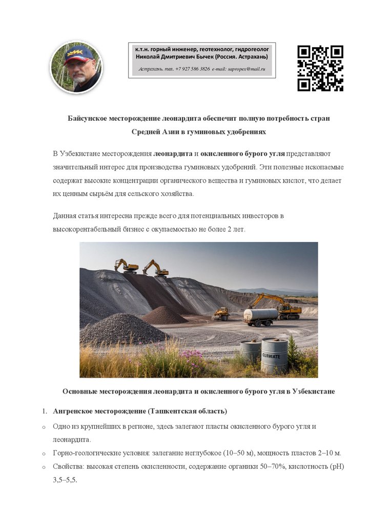 с другими месторождениями окисленного бурого угля и леонардита в регионе, можно