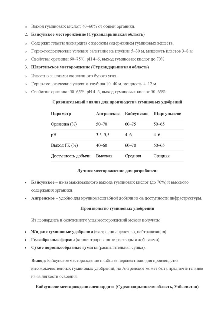 высококачественных гуминовых удобрений, но Ангренское может быть предпочтительнее