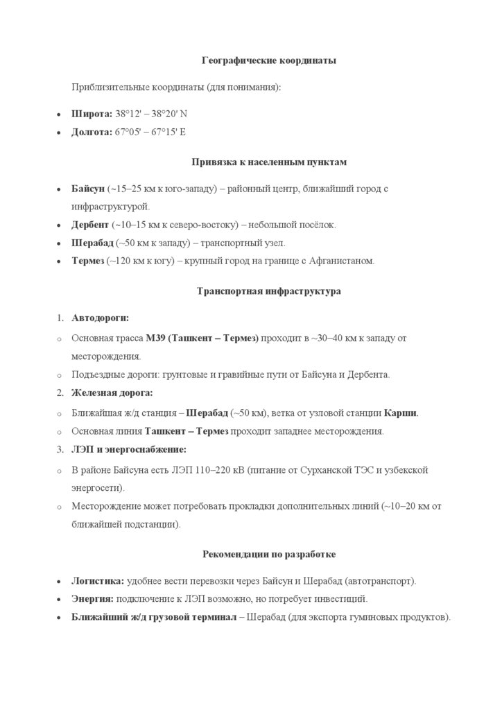 USGS, JORC, ГКЗ Узбекистана) отсутствуют. Однако, учитывая геологическую схожесть