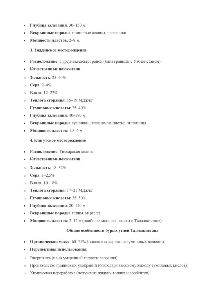 Мощность пластов: 2–12 м (наиболее мощные пласты в Таджикистане).