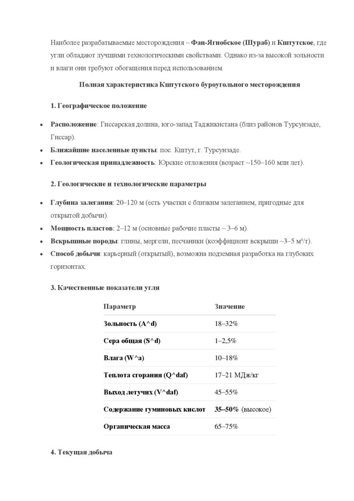 Наиболее разрабатываемые месторождения – Фан-Ягнобское (Шураб) и Кштутское, гдеугли обладают лучшими технологическими свойствами. Однако из-за высокой зольности
