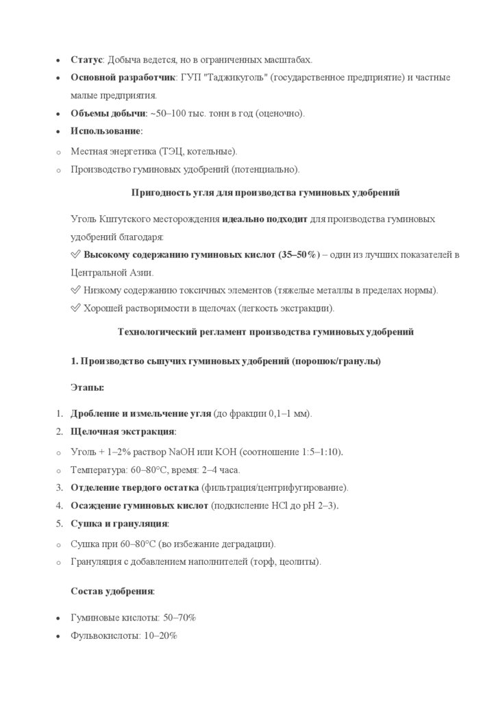 Гуминовые удобрения из бурого угля Кштутского месторождения (содержание