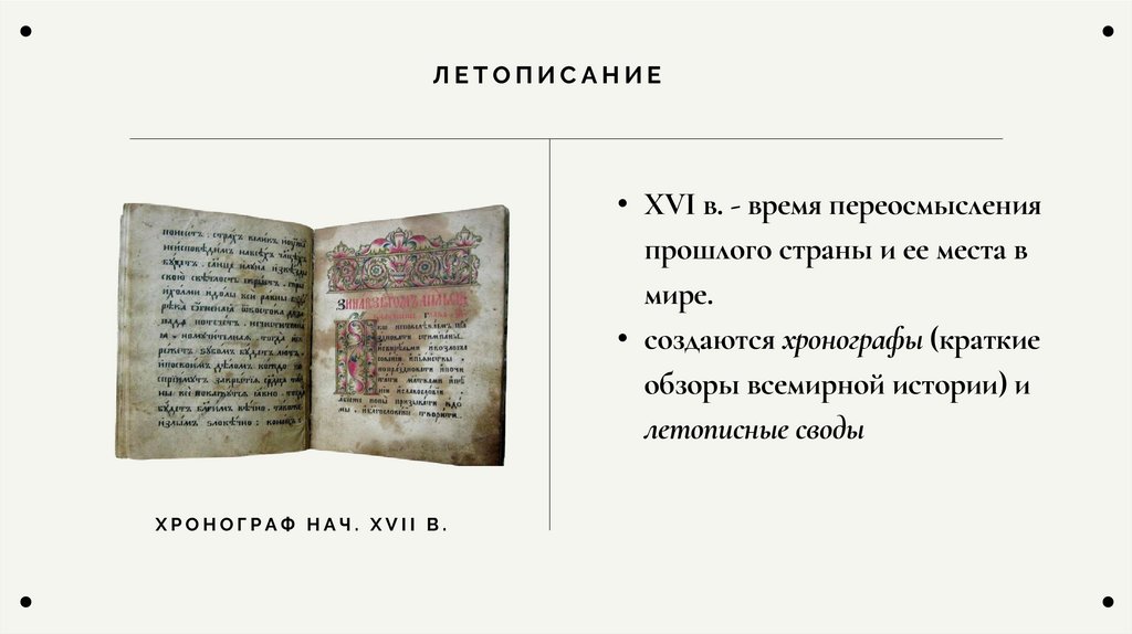ЛЕТОПИСАНИЕ• XVI в. - время переосмысления