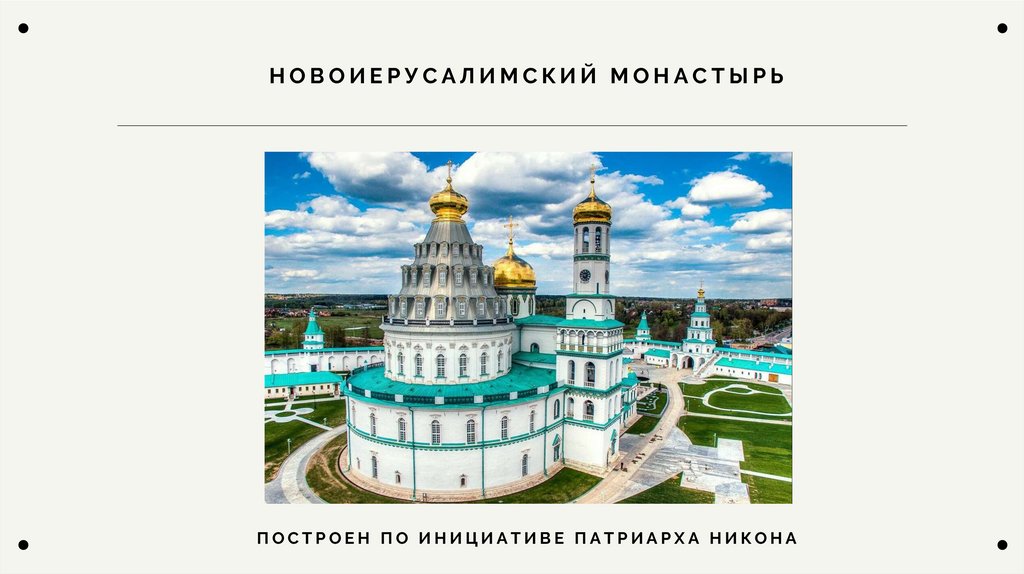 НОВОИЕРУСАЛИМСКИЙ МОНАСТЫРЬПОСТРОЕН ПО ИНИЦИАТИВЕ ПАТРИАРХА НИКОНА