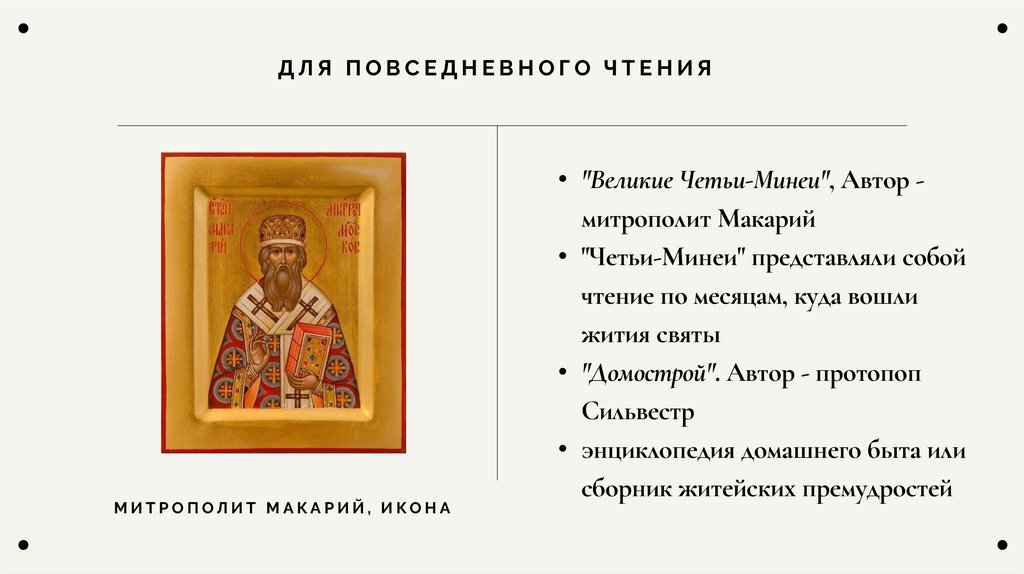 ДЛЯ ПОВСЕДНЕВНОГО ЧТЕНИЯМИТРОПОЛИТ МАКАРИЙ, ИКОНА