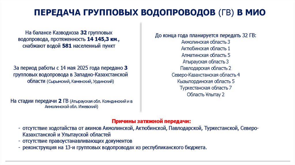 ПЕРЕДАЧА ГРУППОВЫХ ВОДОПРОВОДОВ (ГВ) В МИОНа балансе Казводхоза 32 групповых