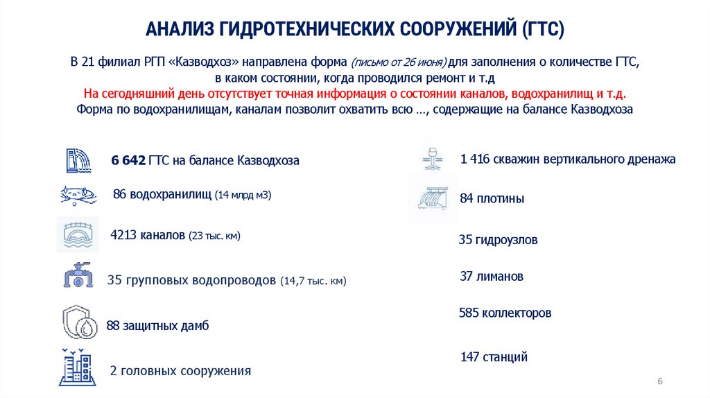 АНАЛИЗ ГИДРОТЕХНИЧЕСКИХ СООРУЖЕНИЙ (ГТС)В 21 филиал РГП «Казводхоз» направлена форма (письмо от 26 июня) для заполнения о количестве ГТС,