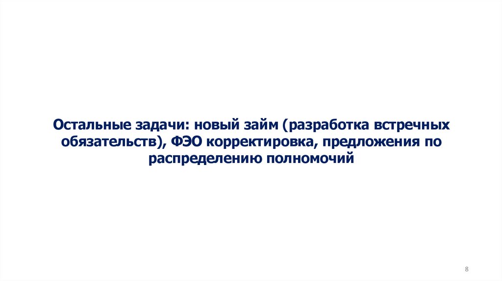 Остальные задачи: новый займ (разработка встречныхобязательств), ФЭО корректировка, предложения по