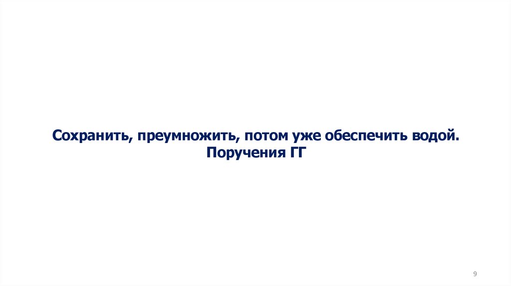 Сохранить, преумножить, потом уже обеспечить водой.Поручения ГГ