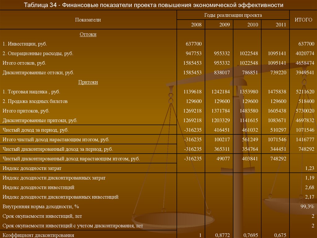 Таблица 34 - Финансовые показатели проекта повышения экономической эффективностиГоды реализации проекта