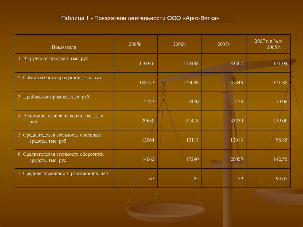 Таблица 1 - Показатели деятельности ООО «Арго-Вятка»Показатели