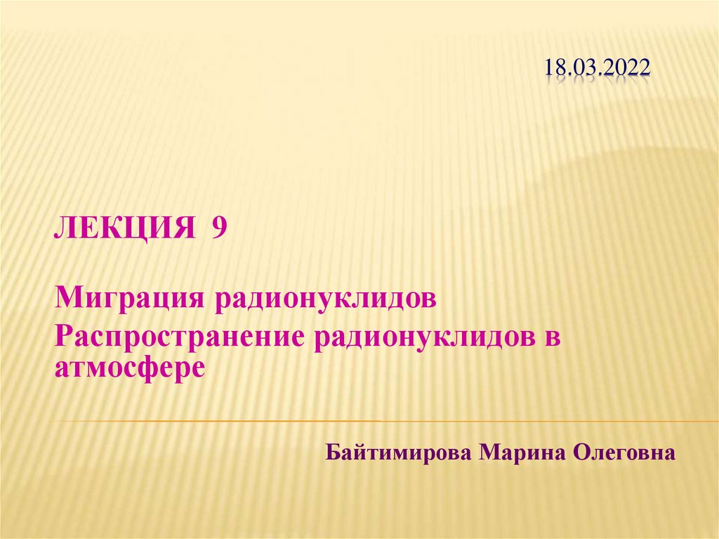 ЛЕКЦИЯ 9Миграция радионуклидов
