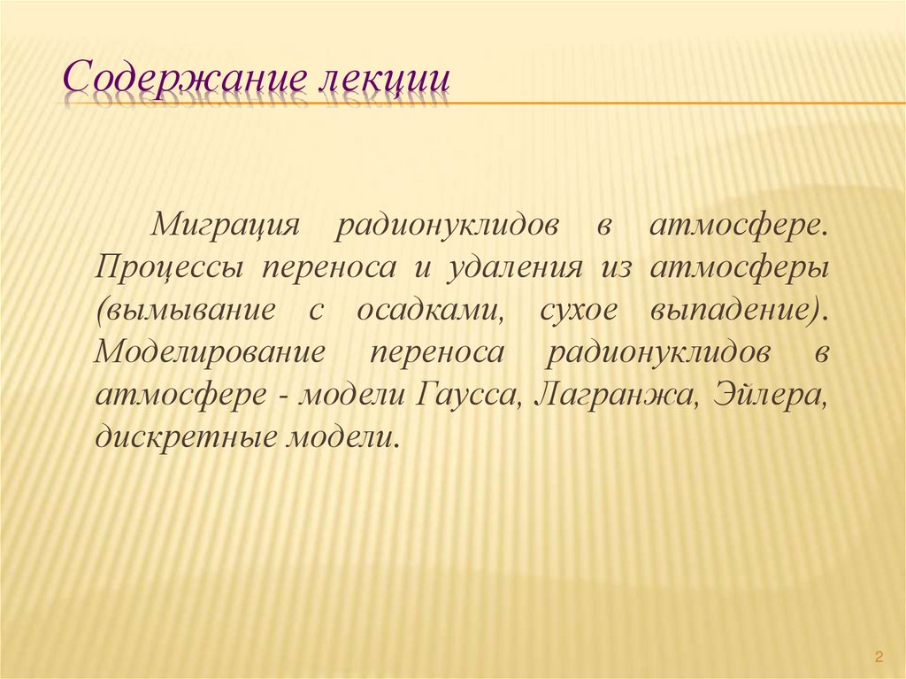 Миграция радионуклидов. Распространение радионуклидов в атмосфере. Лекция 9