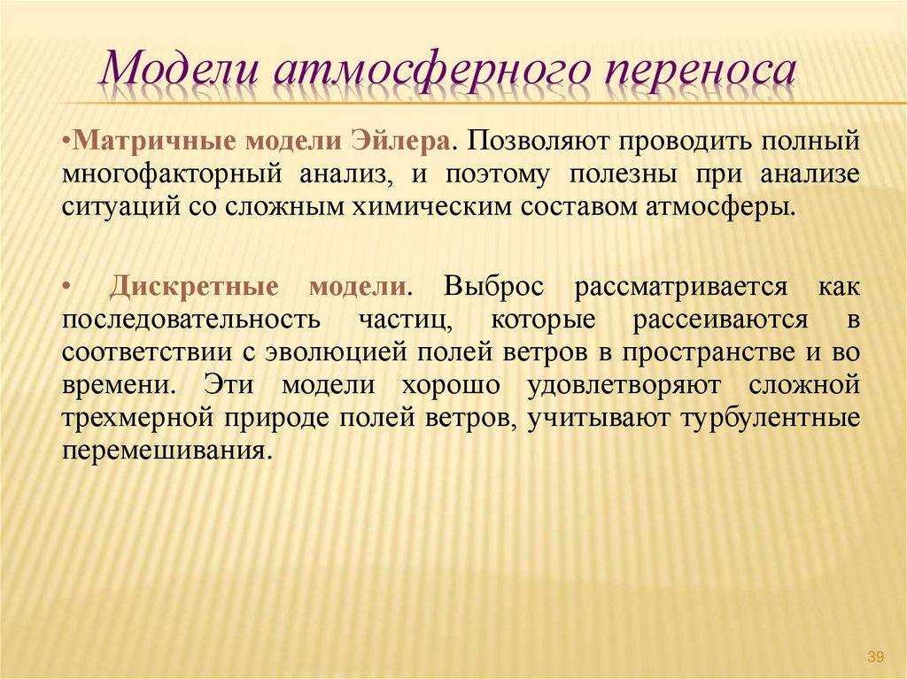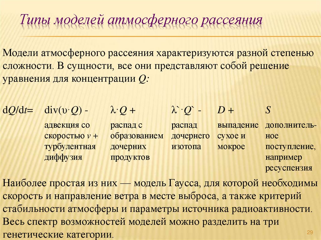 атмосфере - модели Гаусса, Лагранжа, Эйлера,