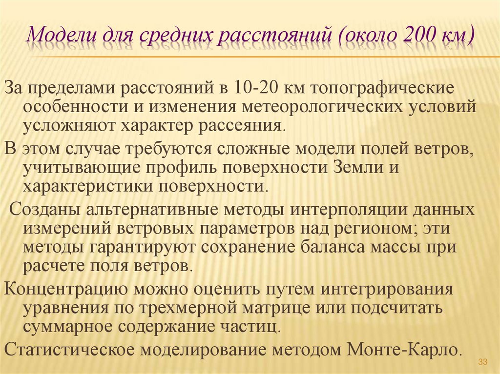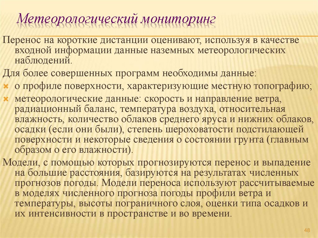 Перенос на короткие дистанции оценивают, используя в качествевходной информации данные наземных метеорологических