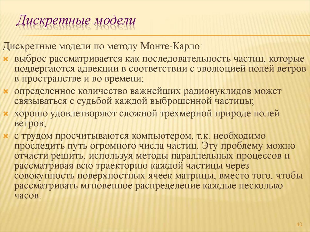 Модели, с помощью которых прогнозируются перенос и выпадение