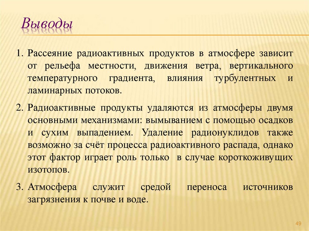 1. Рассеяние радиоактивных продуктов в атмосфере зависитот рельефа местности, движения ветра, вертикального