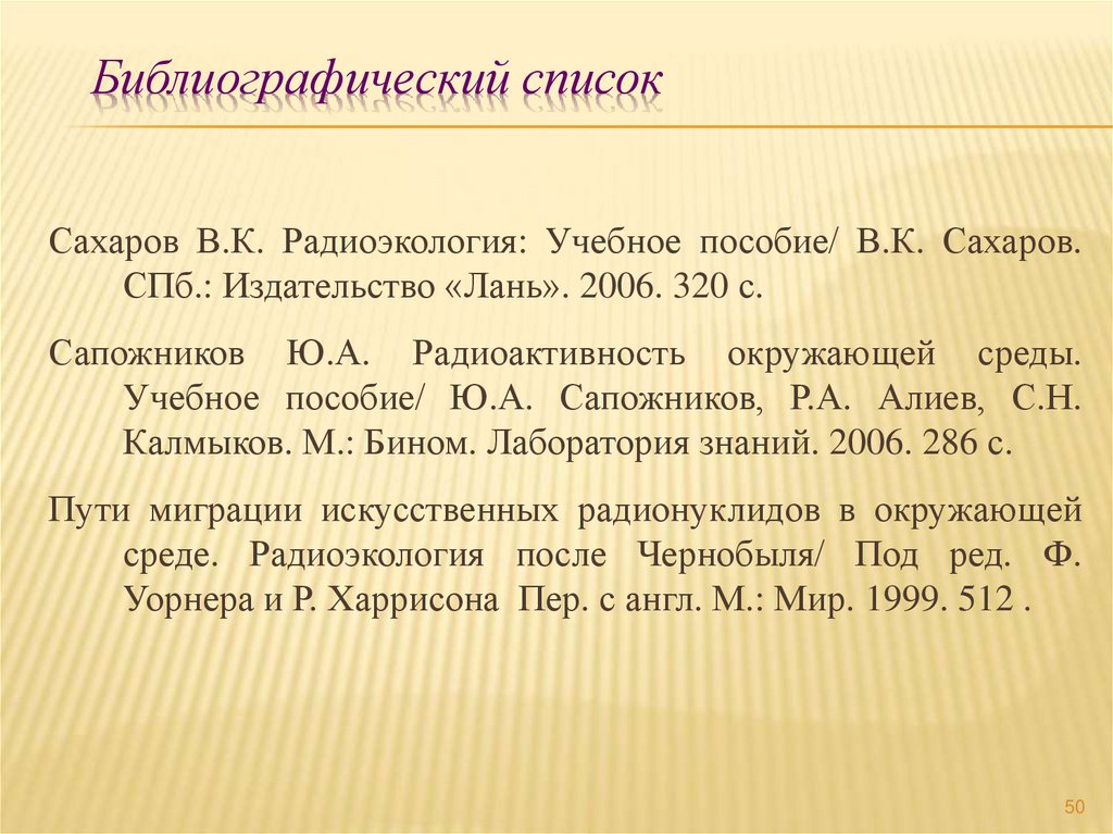 Сахаров В.К. Радиоэкология: Учебное пособие/ В.К. Сахаров.СПб.: Издательство «Лань». 2006. 320 с.