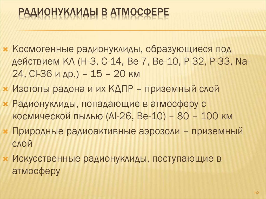 РАДИОНУКЛИДЫ В АТМОСФЕРЕКосмогенные радионуклиды, образующиеся под