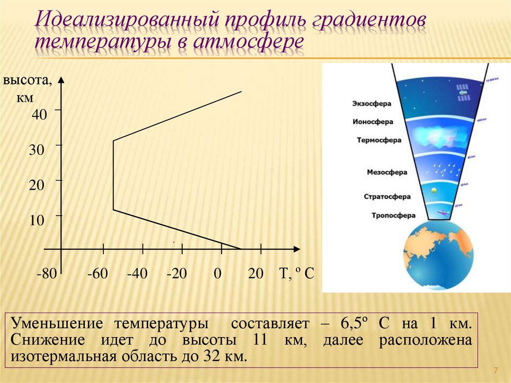 7. Идеализированный профиль градиентов температуры в атмосфере