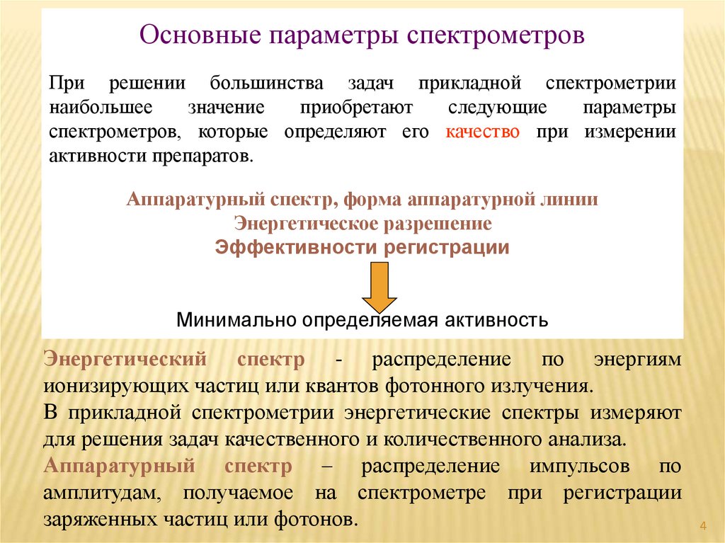 Основные параметры спектрометровПри решении большинства задач прикладной спектрометрии