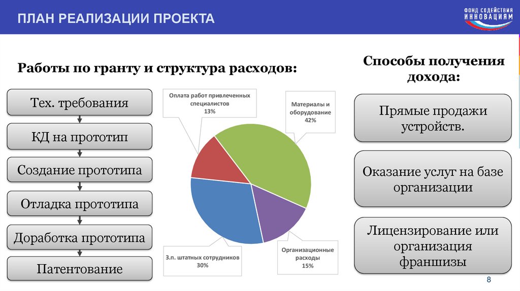 ПЛАН РЕАЛИЗАЦИИ ПРОЕКТАРаботы по гранту и структура расходов: