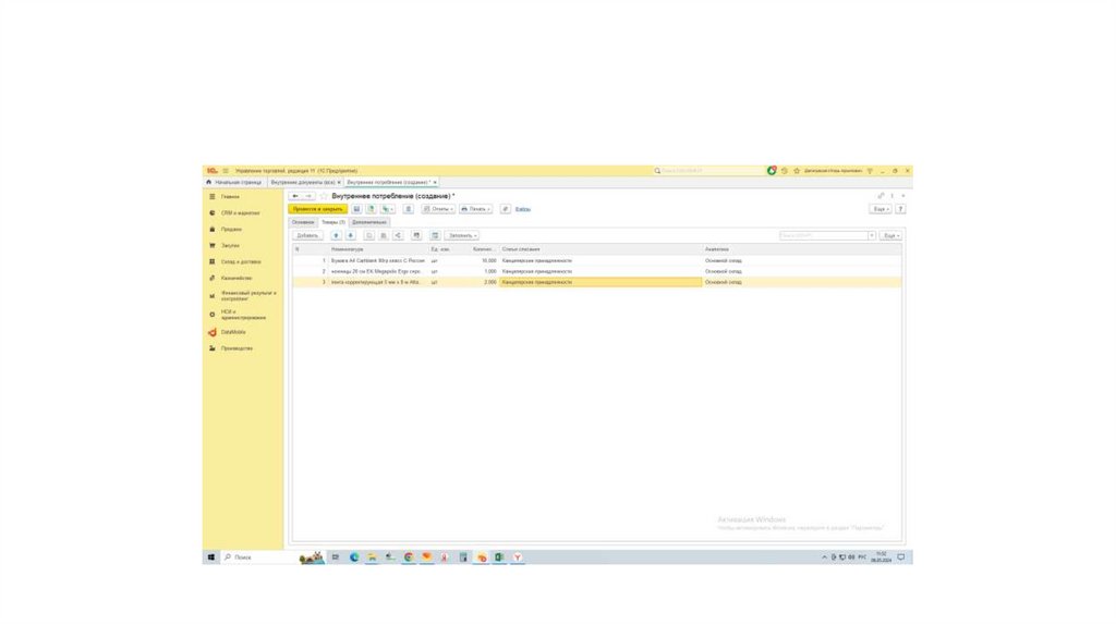 4. Создать-Внутреннее потребление-Списание на расходы.