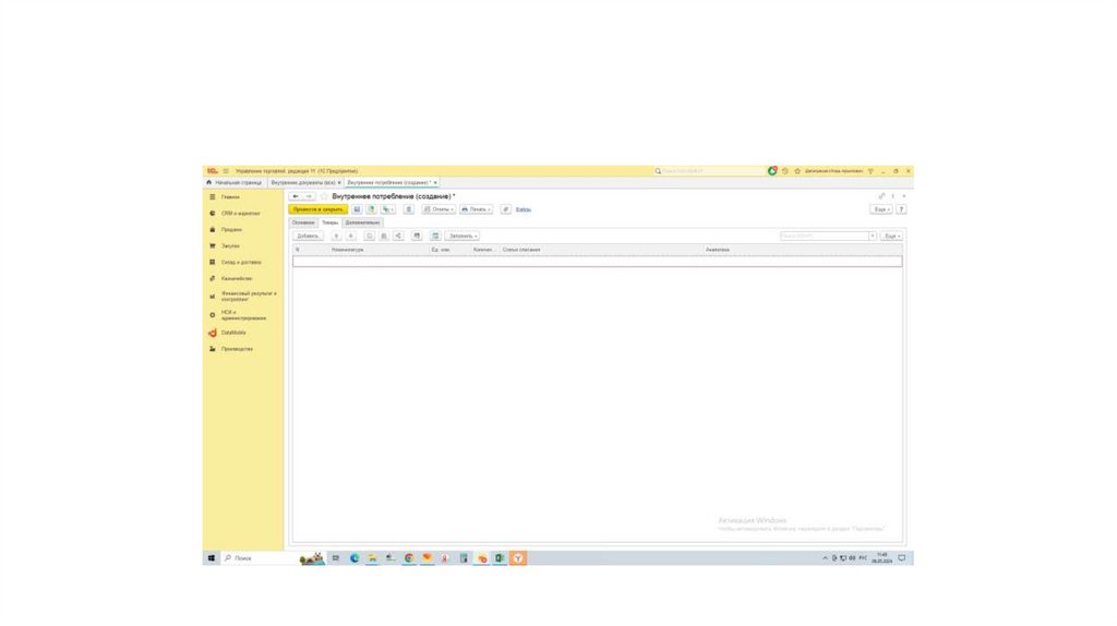 9. Через поиск ищем нужный нам ТМЦ . После выбора нажимаем на вкладку Перенести в документ.