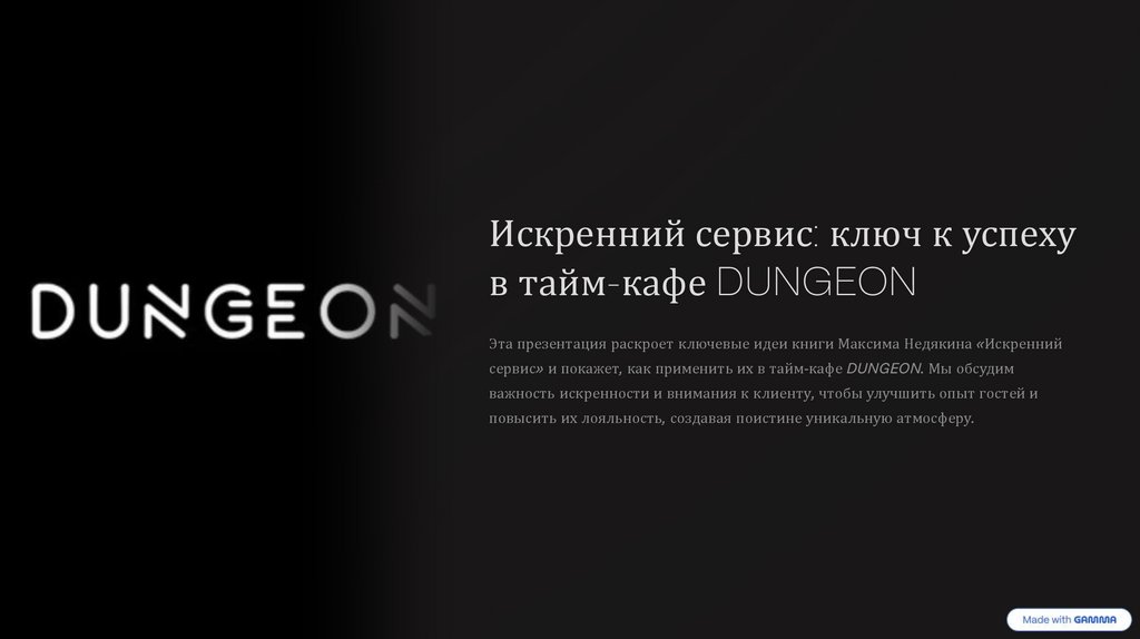 сервис» и покажет, как применить их в тайм-кафе DUNGEON. Мы обсудим