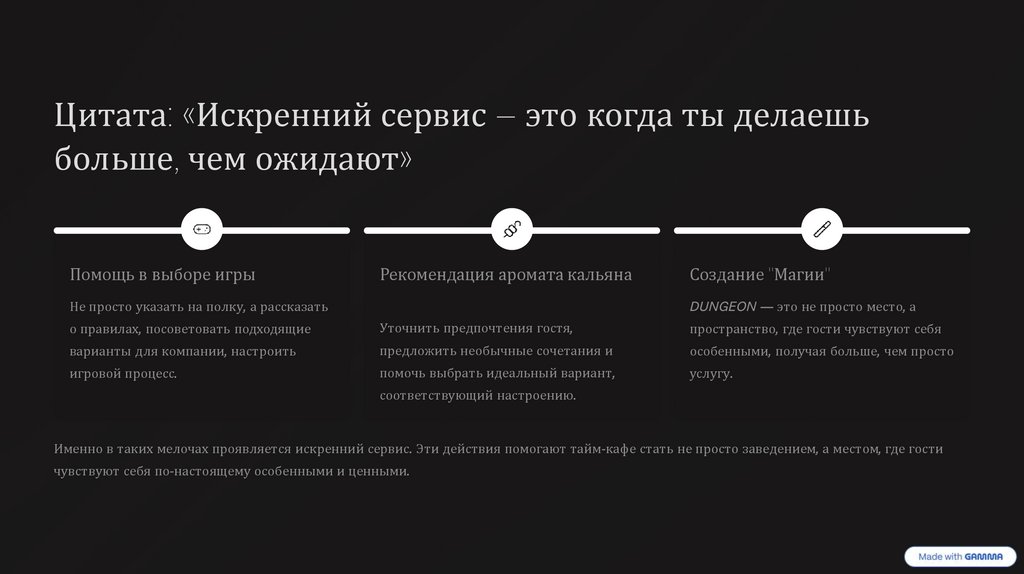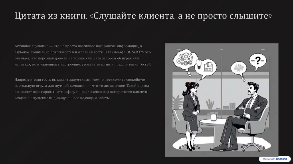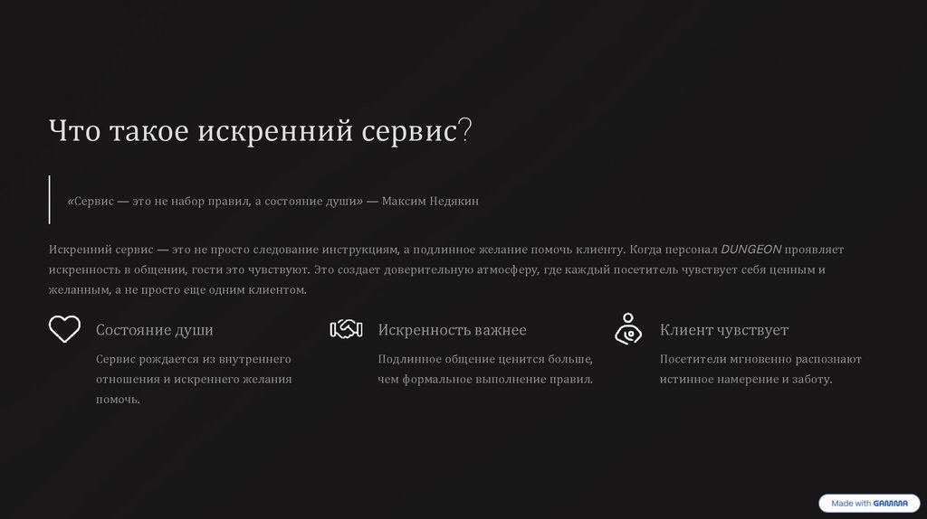 Искренний сервис — это не просто следование инструкциям, а подлинное желание помочь клиенту. Когда персонал DUNGEON проявляет