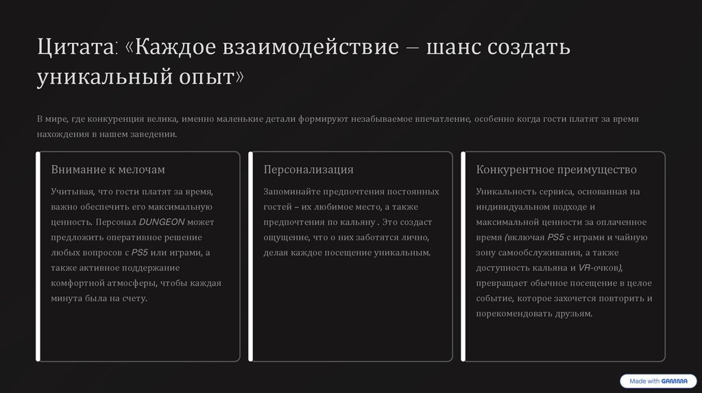 глубокое понимание потребностей и желаний гостя. В тайм-кафе DUNGEON это