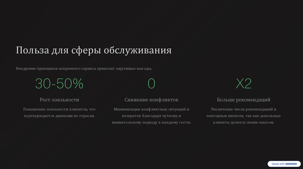 Польза для сферы обслуживанияВнедрение принципов искреннего сервиса приносит ощутимые выгоды.