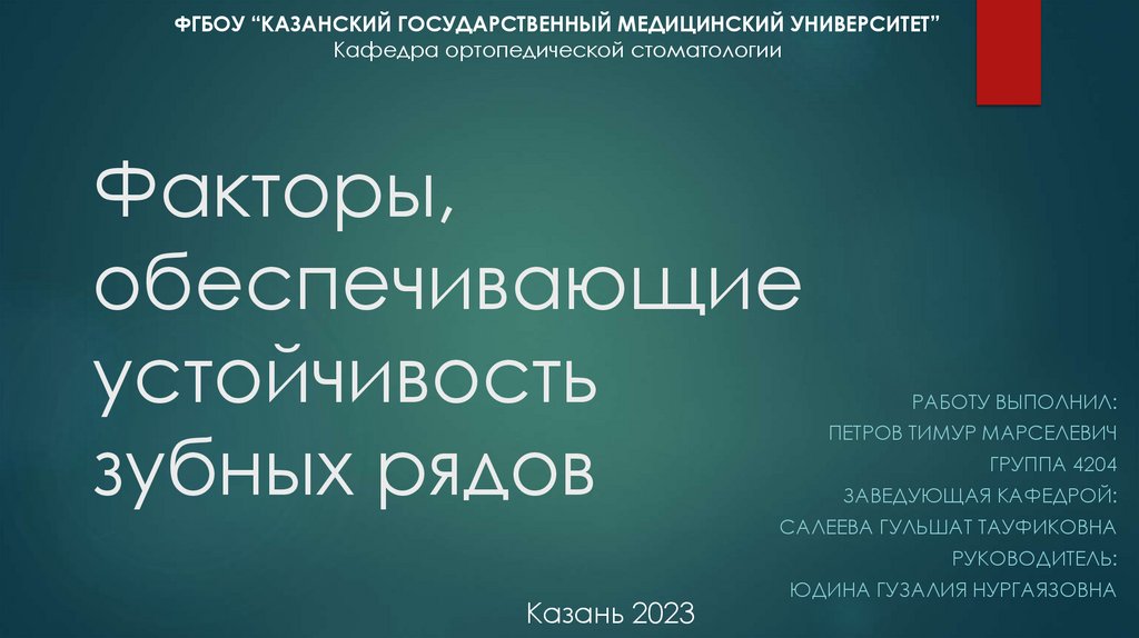 ФГБОУ “КАЗАНСКИЙ ГОСУДАРСТВЕННЫЙ МЕДИЦИНСКИЙ УНИВЕРСИТЕТ”Кафедра ортопедической стоматологии