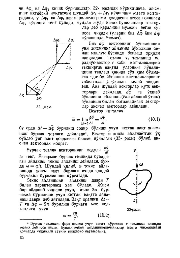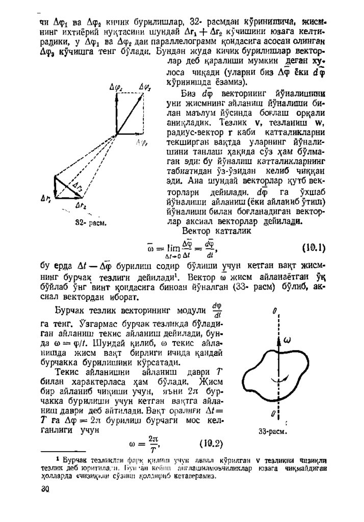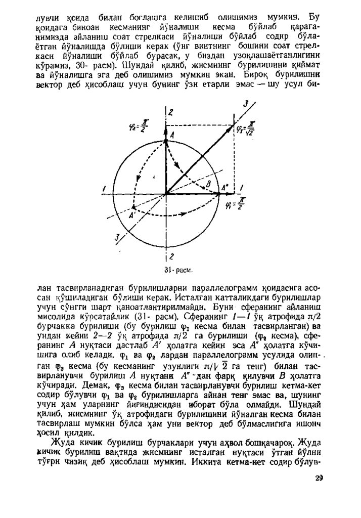 к{?рамиз, 30- расм). Ш ундай цилиб, жисмнинг бурилишини циймат